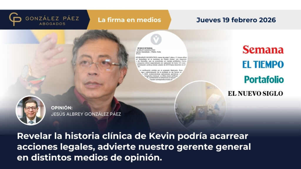 En el marco del caso del menor Kevin Arley Acosta Pico, el CEO de la firma Jesús Albrey González Páez y Presidente del Colegio de Abogados en Derecho Médico de Colombia ha emitido un pronunciamiento sobre las implicaciones legales de la divulgación de información médica en medios de comunicación y espacios públicos.
